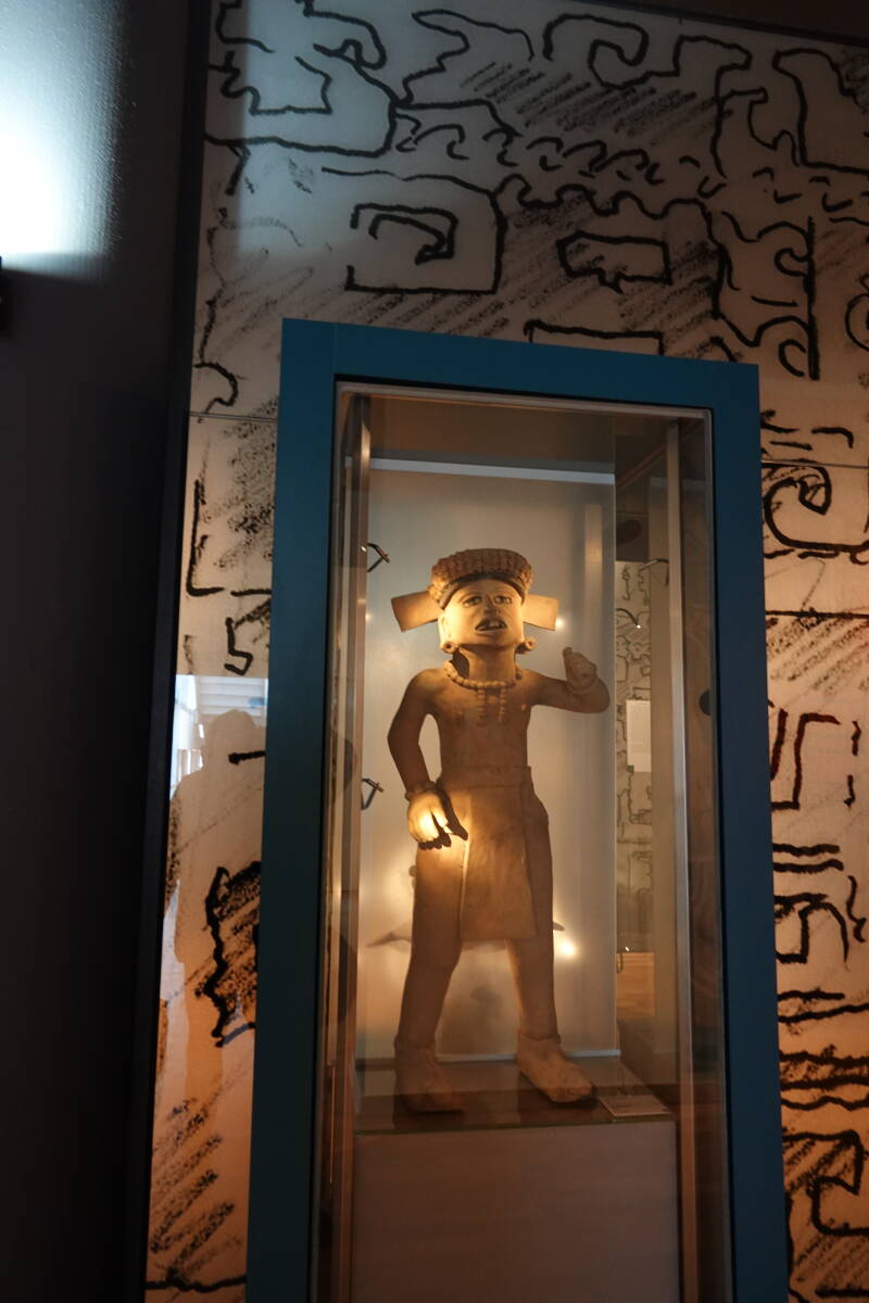 Quand on a fini de suivre le parcours du chocolat dans les machines, on passe devant une fontaine à chocolat que surplombe cette sculpture de cabosses.